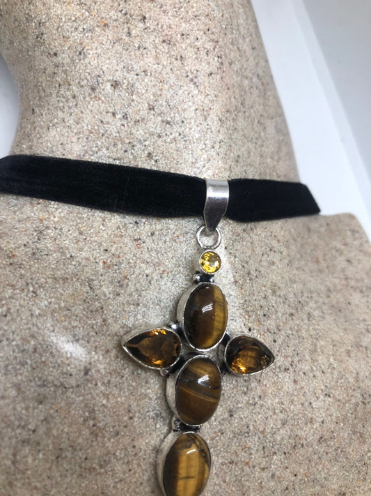 Handmade Turkish Ottoman Styled Silver tigers eye cross Pendant Necklace