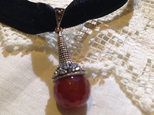 Handmade Turkish Ottoman Styled Y Necklace 925 Sterling Silver Marcasite Carnelian Pendant