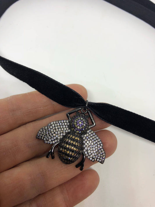 Handmade Gothic Styled Silver Finished Genuine Austrin Crystal insect bug Choker Necklace