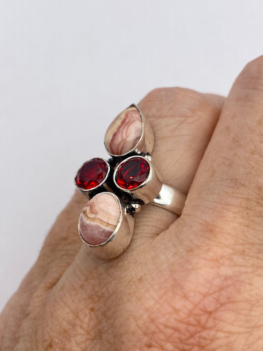 Vintage Pink Rhodocrocite Ring Silver Cocktail