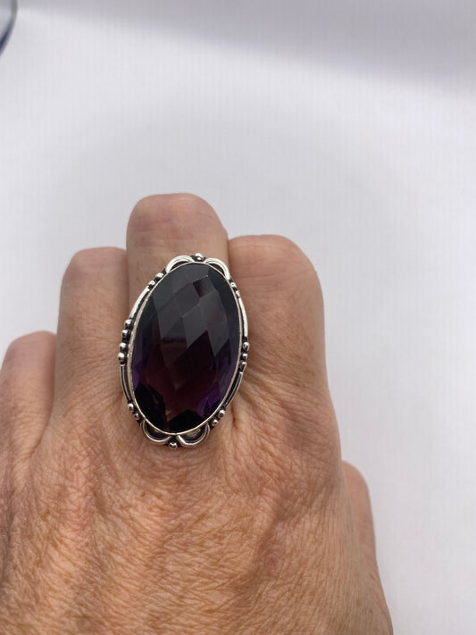 Vintage Amethyst Glass Ring Antique Statement Cocktail