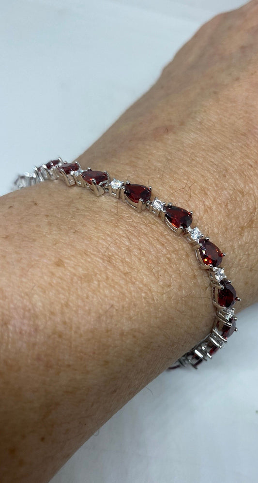 Vintage Bohemian Red Garnet and Cubic Zirconia Bracelet 925 Sterling Silver
