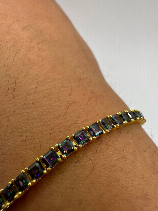 Vintage Mystic Blue Topaz Golden 925 Sterling Silver Tennis Bracelet
