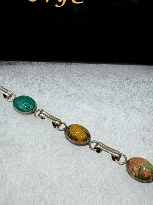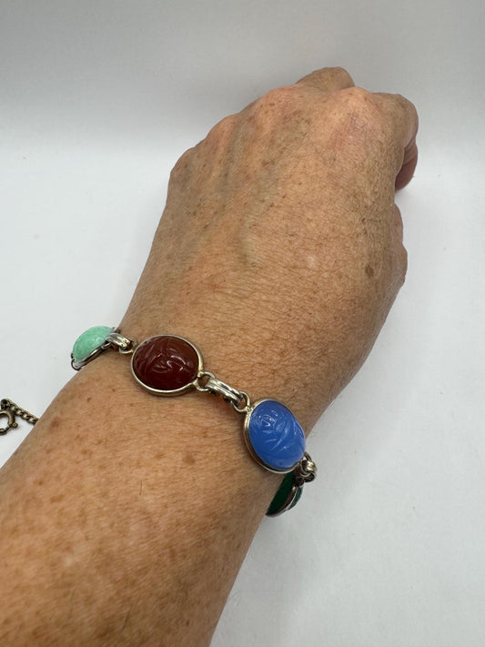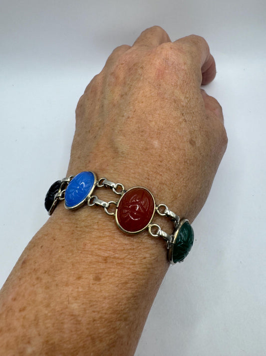 Vintage Scarab Bracelet 925 Sterling silver Carved Gemstones