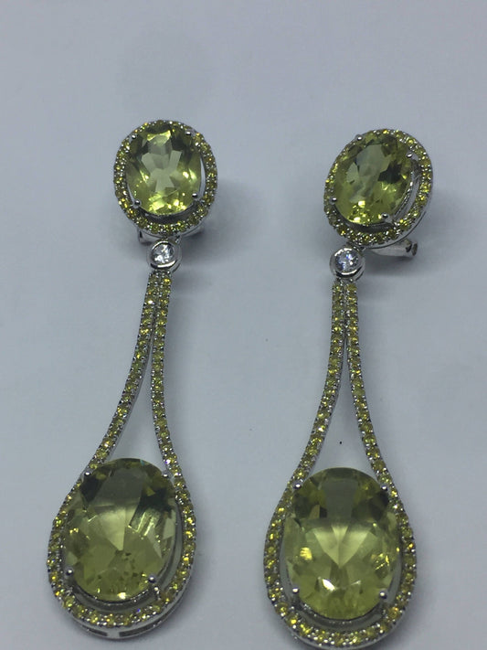 Vintage Mixed Genuine Lemon Quartz Citrine Gemstone Filigree 925 Sterling Silver Dangle Chandelier Earrings