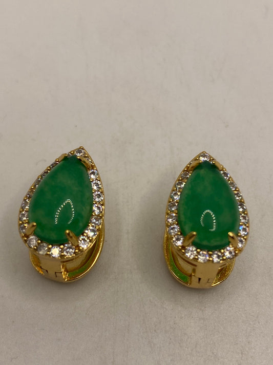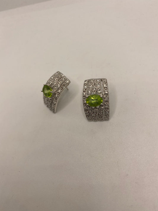 Vintage Green Peridot post 925 Sterling Silver button Earrings