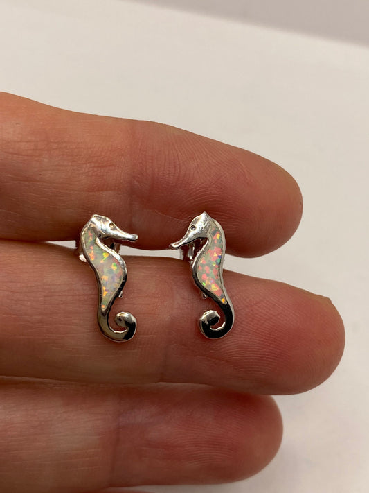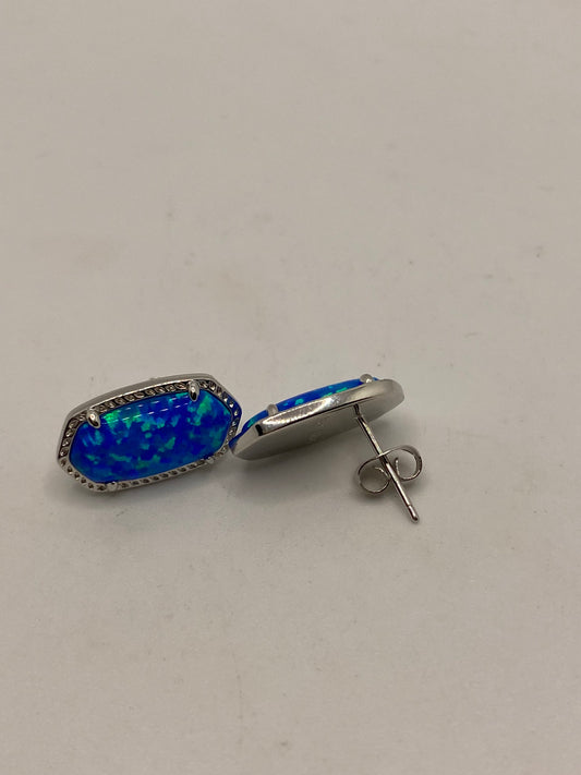 Vintage Blue Opal Earrings 925 Sterling Silver Stud Button