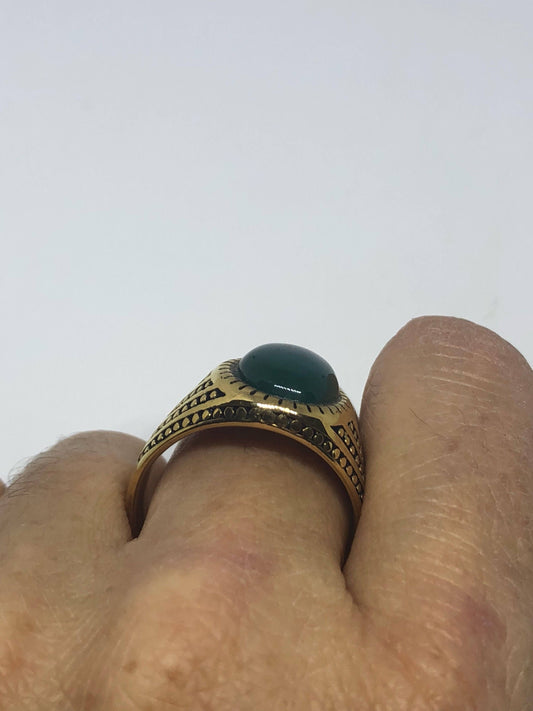 Vintage Gothic Gold Finished Genuine Green Chrysopraise Mens Ring