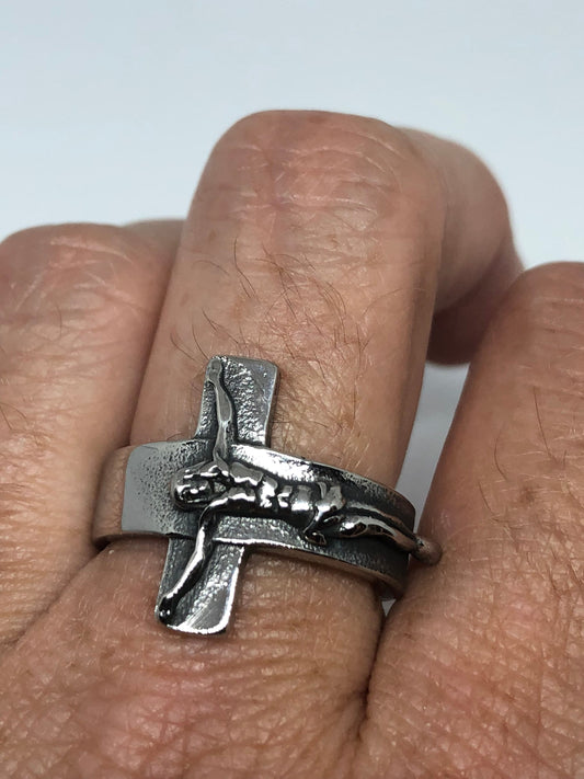 Vintage Gothic Cross Crucifix Mens Ring