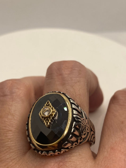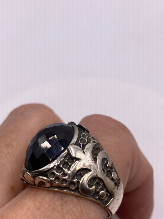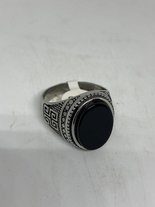 Vintage Onyx Mens Ring 925 Sterling Silver Gothic Genuine Black Onyx