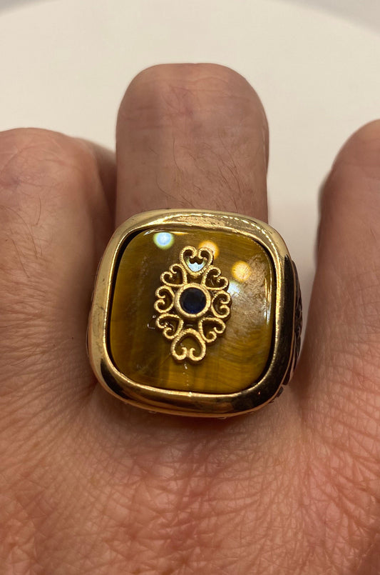 Vintage Tigers Eye Mens Ring in 925 Sterling Silver Persian Genuine