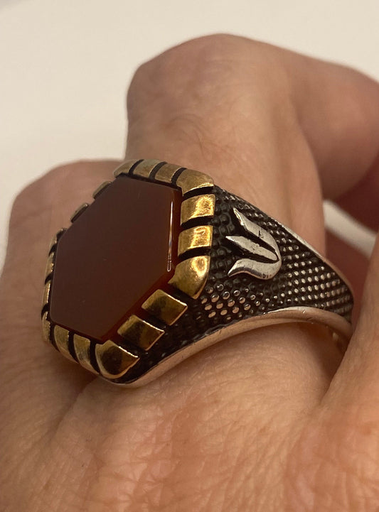 Vintage Sterling Silver Red Carnilian Mens Ring
