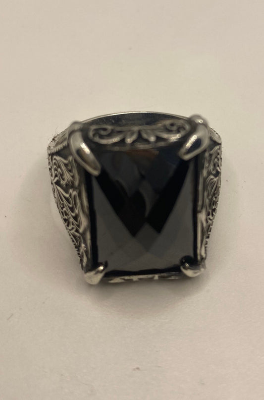 Vintage Onyx Mens Ring in 925 Sterling Silver Persian Genuine Black Onyx