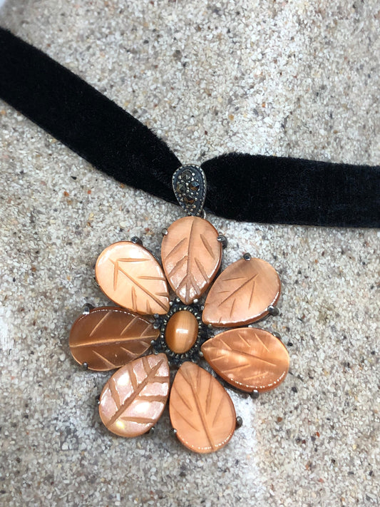 Vintage Orange Lab Cats Eye Choker 925 Sterling Silver Necklace
