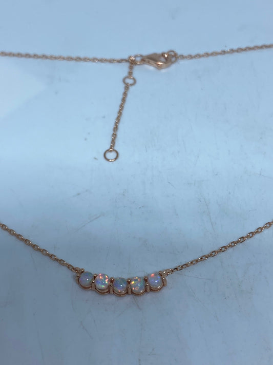 Vintage White Opal Choker Rose Golden 925 Sterling Silver Pendant Necklace