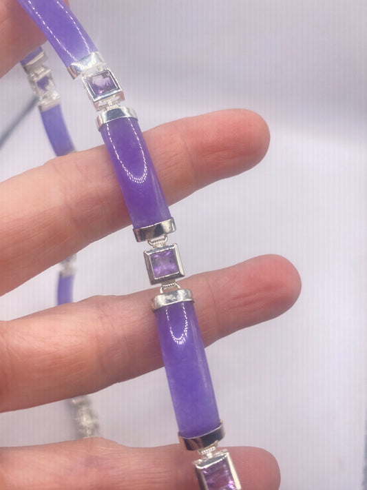 Vintage Purple Jade Amethyst Choker 925 Sterling Silver Pendant Necklace
