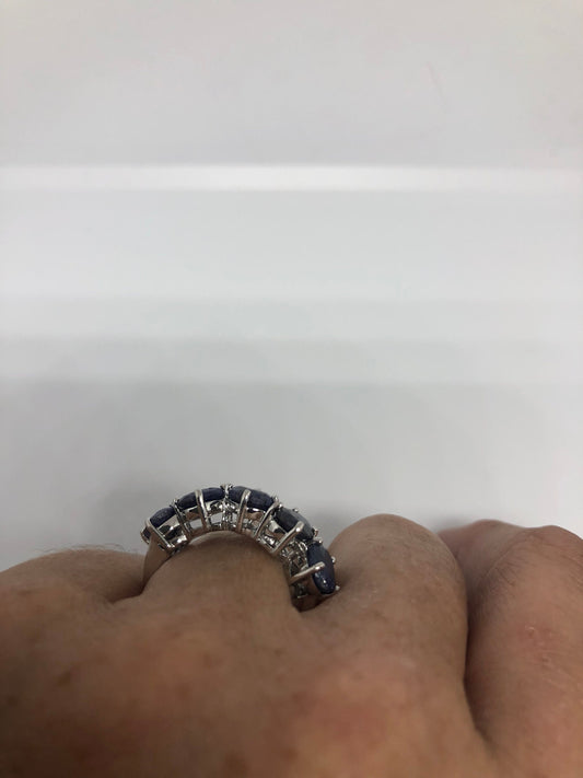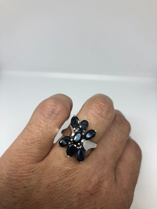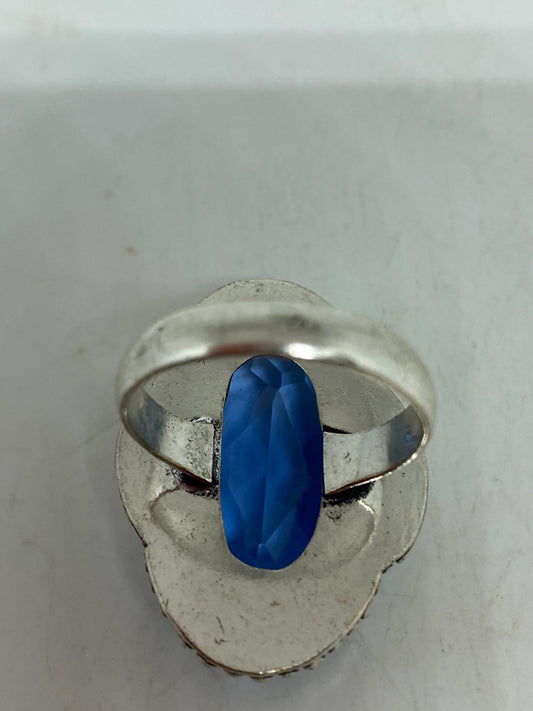 Vintage Handmade Deep Blue Sapphire Setting 925 Sterling Silver Gothic Ring