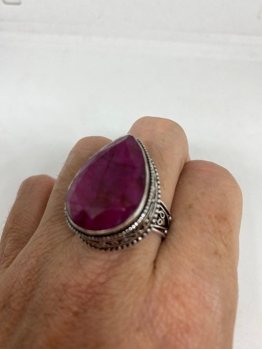 Vintage Raw Pink Ruby Deco Silver Cocktail Ring
