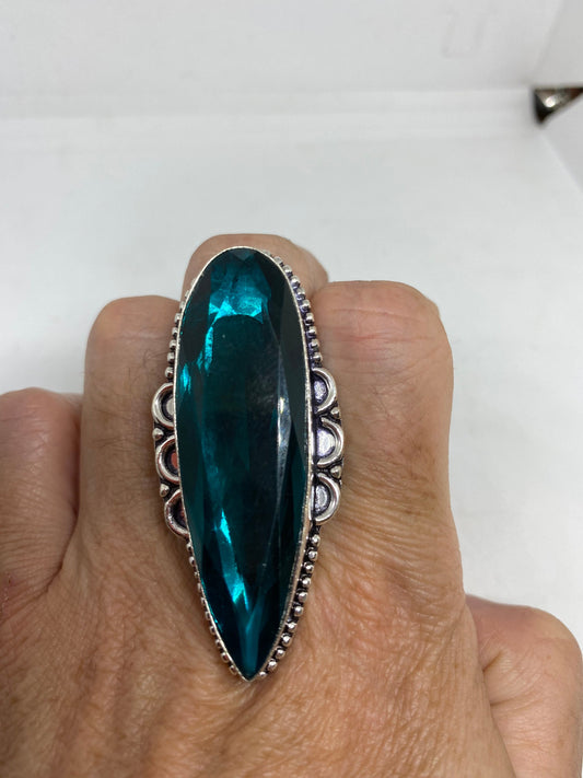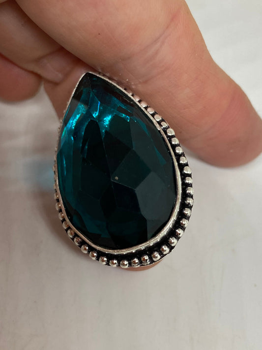 Vintage Aquamarine Vintage Art Glass Deco Ring