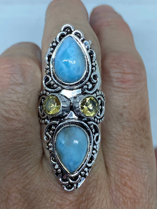 Vintage Blue Genuine Larimar Citrine Ring