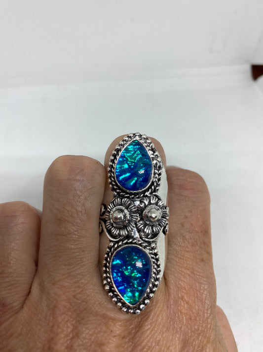 Vintage Blue Opal Glass Cocktail Ring