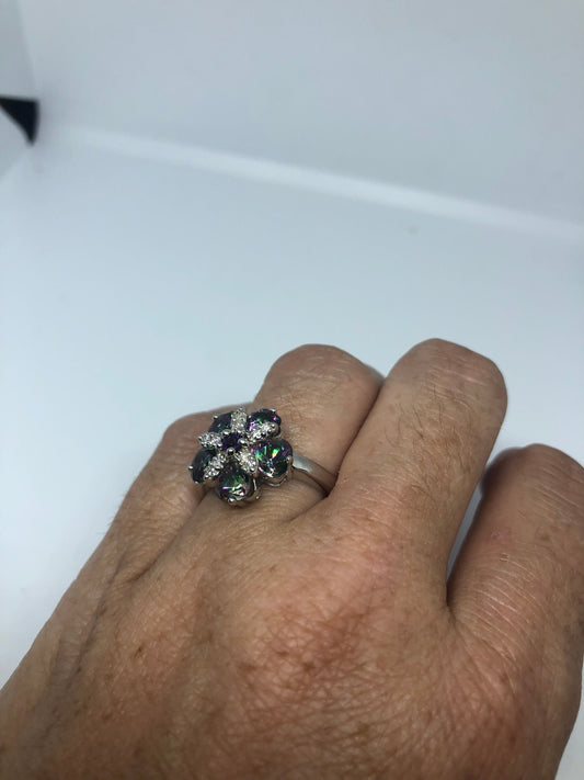 Vintage Genuine Mystic Blue Topaz 925 Sterling Silver Ring