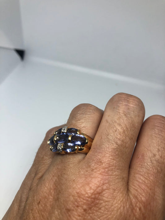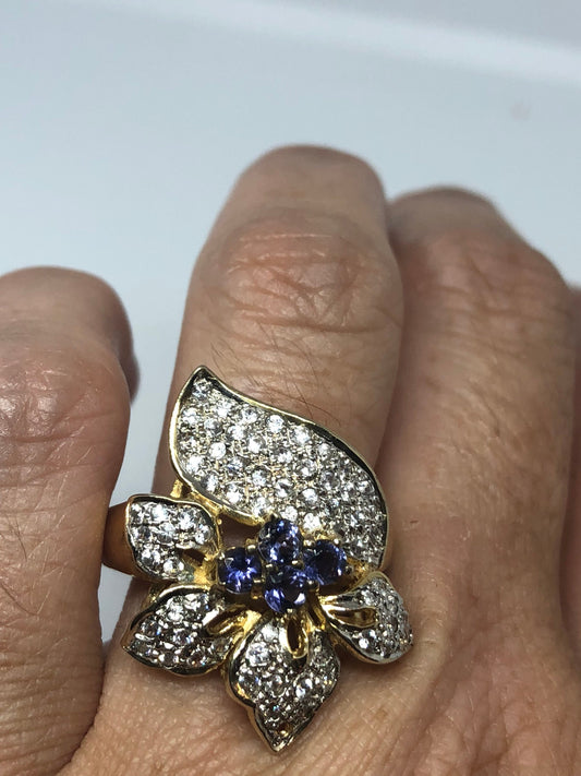 Vintage Handmade Blue Tanzanite Setting Golden 925 Sterling Silver Gothic Ring
