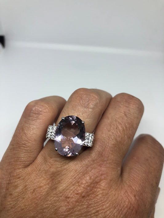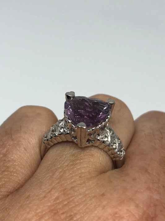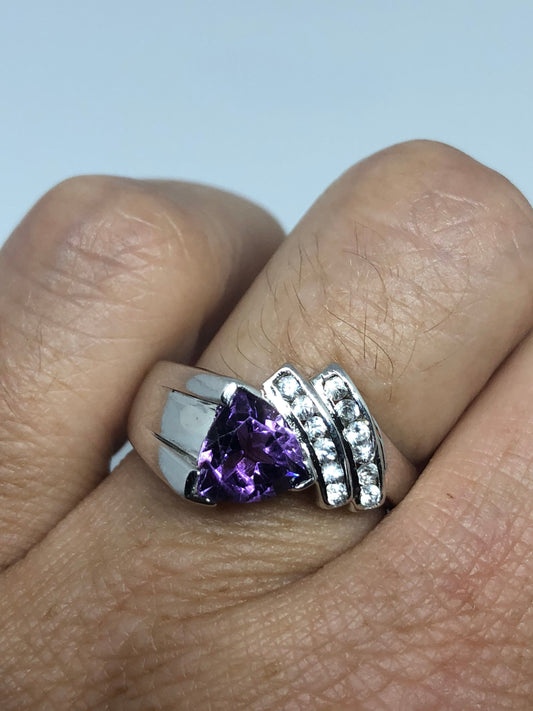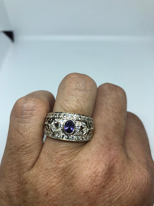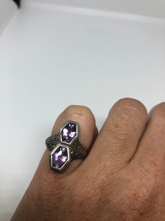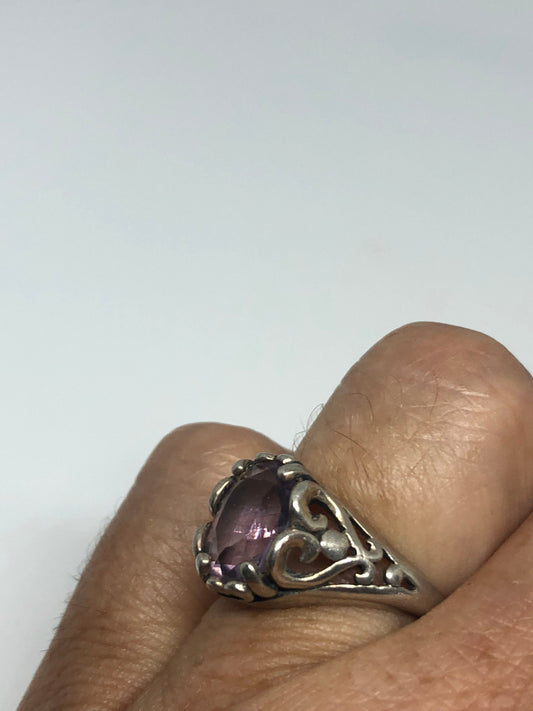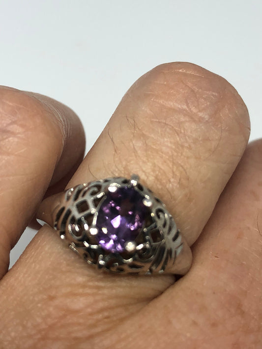 Vintage Handmade Deep Purple Genuine Amethyst Setting 925 Sterling Silver Gothic Ring