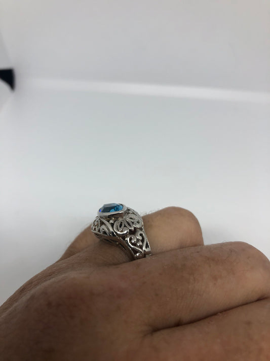 Vintage Genuine Blue Topaz 925 Sterling Silver Rhodium Ring