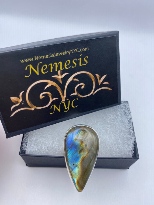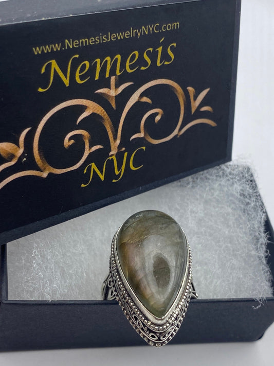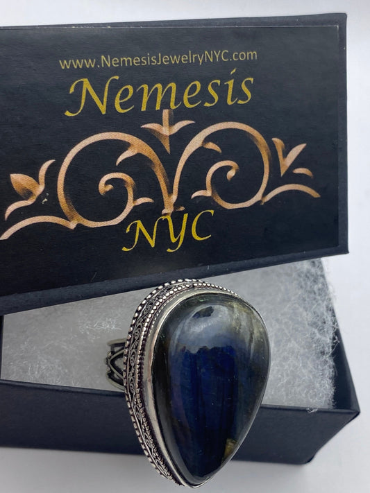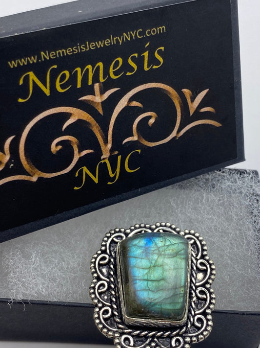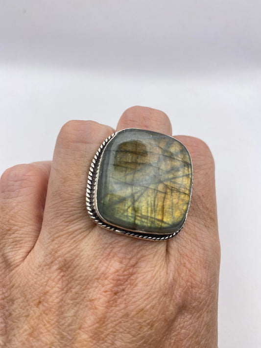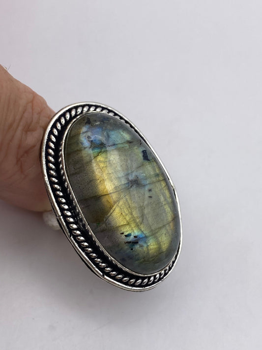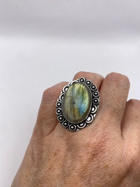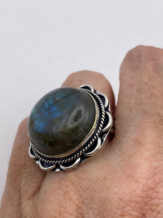 Vintage Large Blue Green Labradorite Stone Silver Ring