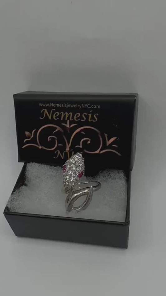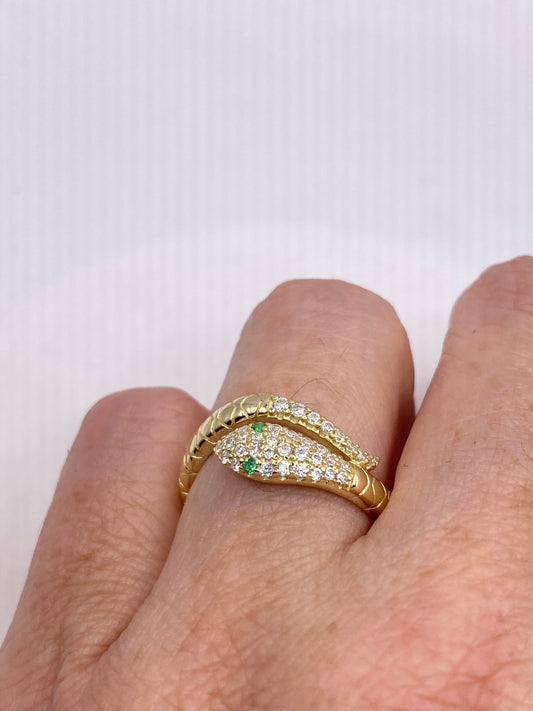 Vintage Sterling Silver Adjustable Crystal Snake Ring