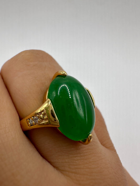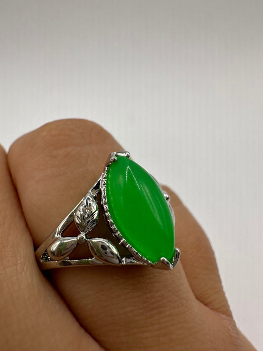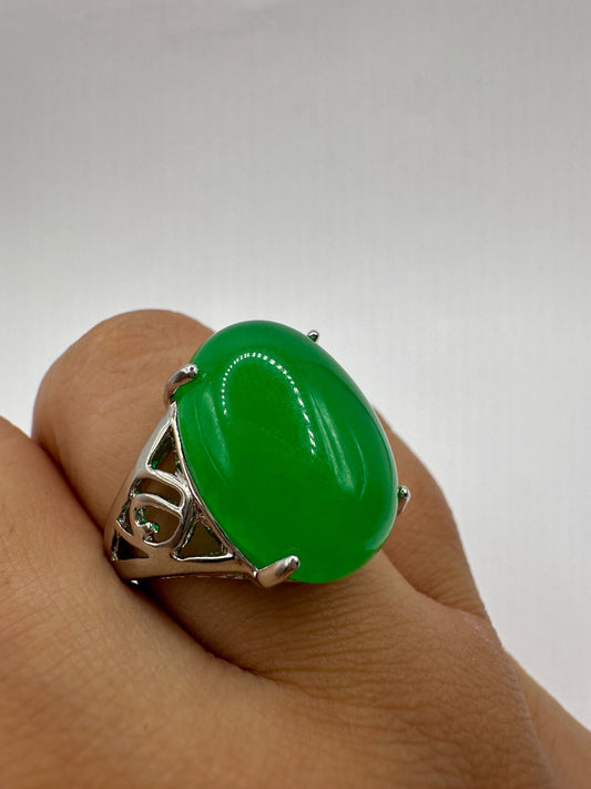 Vintage Lucky Green Nephrite Jade Ring Adjustable