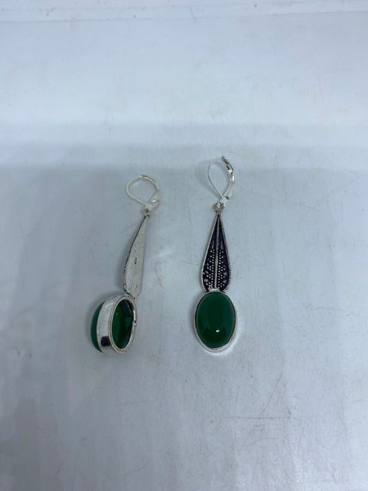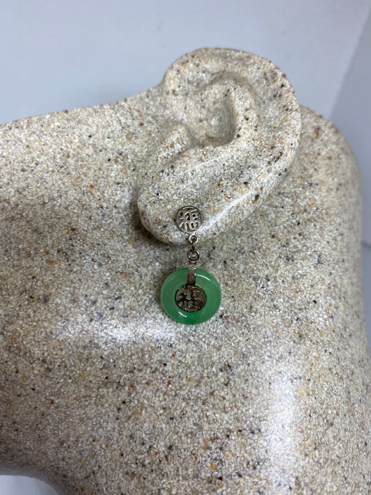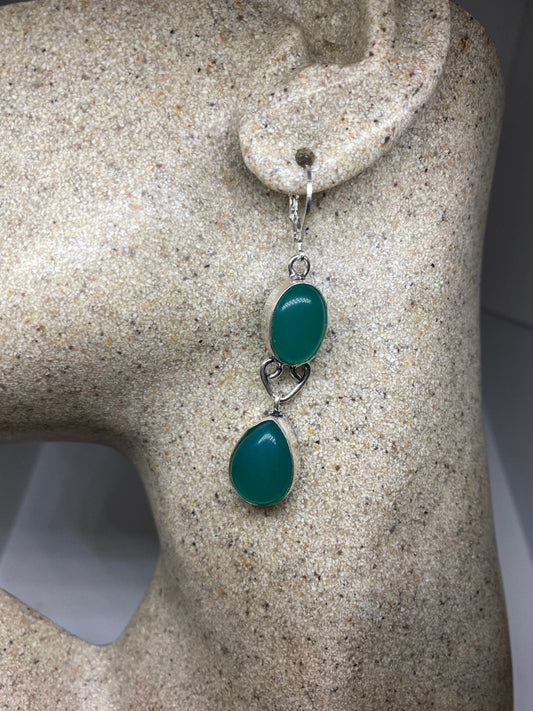Vintage Fun Green Jade Gemstone Silver Earrings