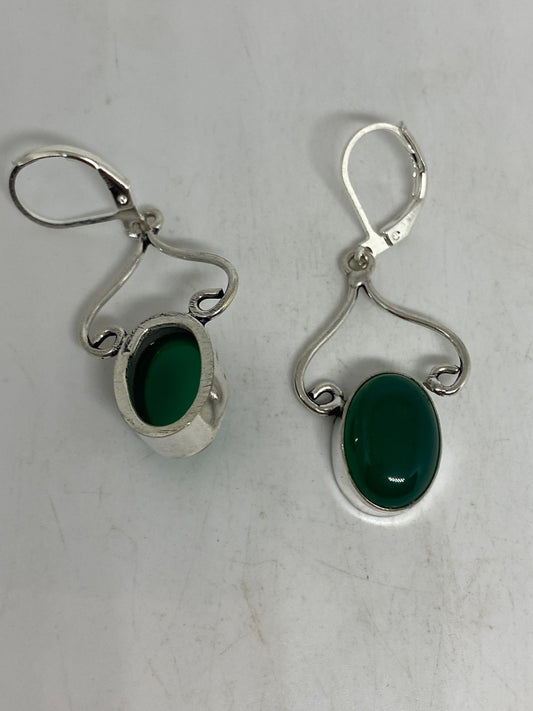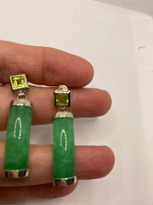 Vintage Green Jade Peridot 925 Sterling Silver Earrings