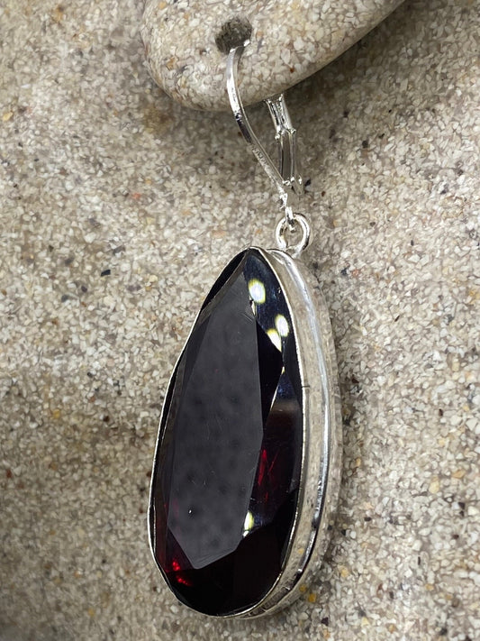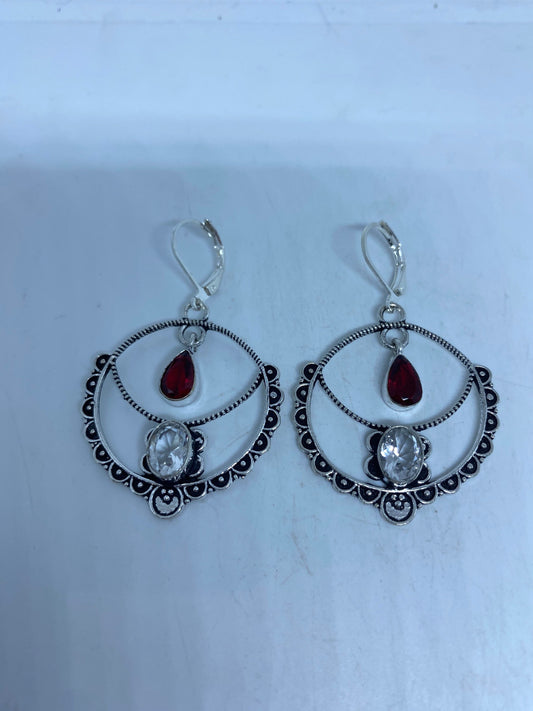 Vintage Red Garnet Clear Quartz Earrings 925 Sterling Silver