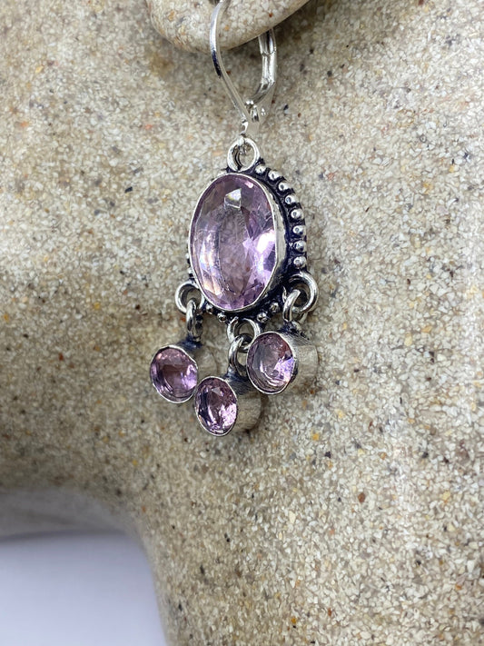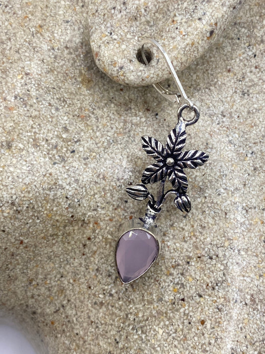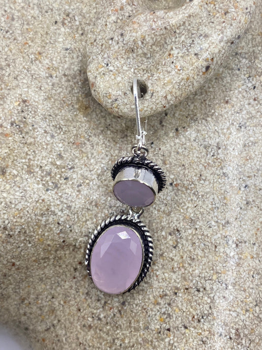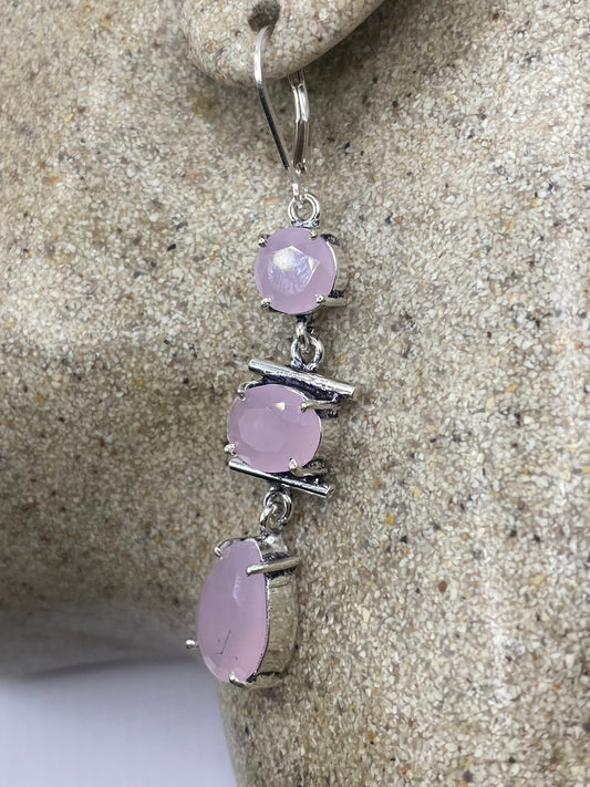 Antique Vintage Pink Rose Quartz Silver Dangle Earrings