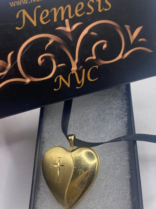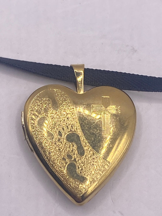 Vintage Gold Locket | Tiny Heart 9k Gold Filled Pendant Photo Memory Charm Engraved Cross | Choker Necklace