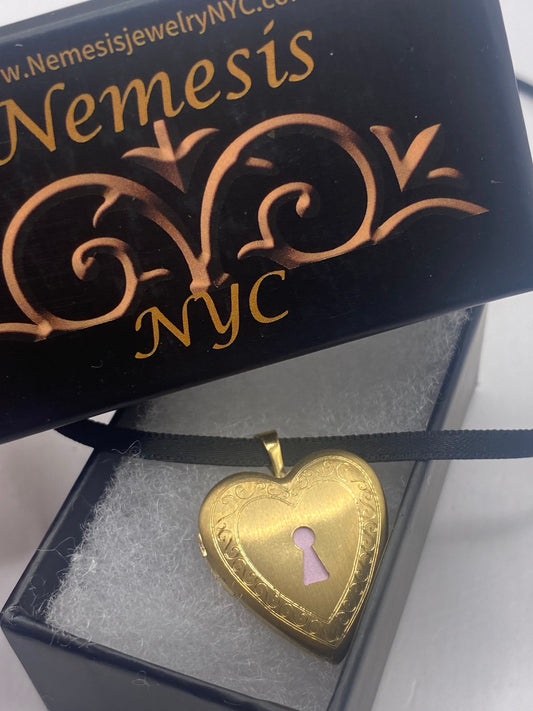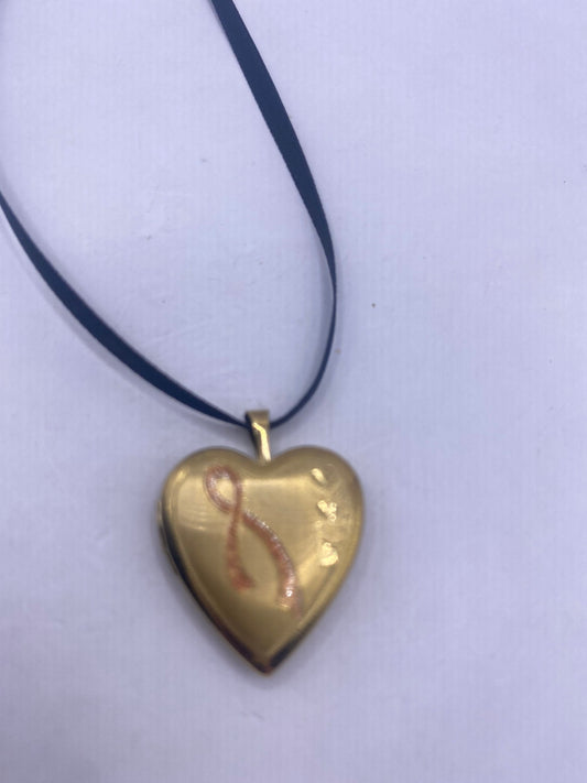 Vintage Gold Locket | Tiny Heart 9k Gold Filled Pendant Photo Memory Charm Engraved Pink Ribbon Hearts | Choker Necklace