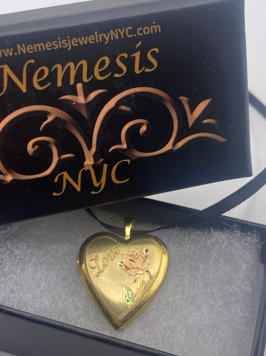 Vintage Gold Locket | Tiny Heart 9k Gold Filled Pendant Photo Memory Charm Engraved Love Rose | Choker Necklace