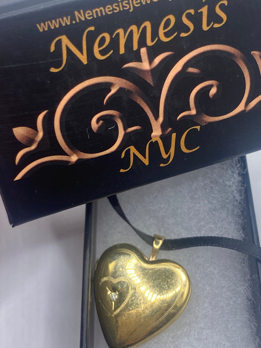 Vintage Gold Locket | Tiny Heart 9k Gold Filled Pendant Photo Memory Charm Engraved Etched Design | Choker Necklace