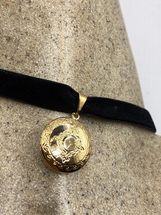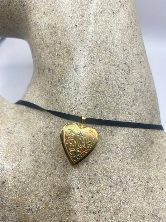 Vintage Heart Locket Choker Gold Filled MOM Necklace