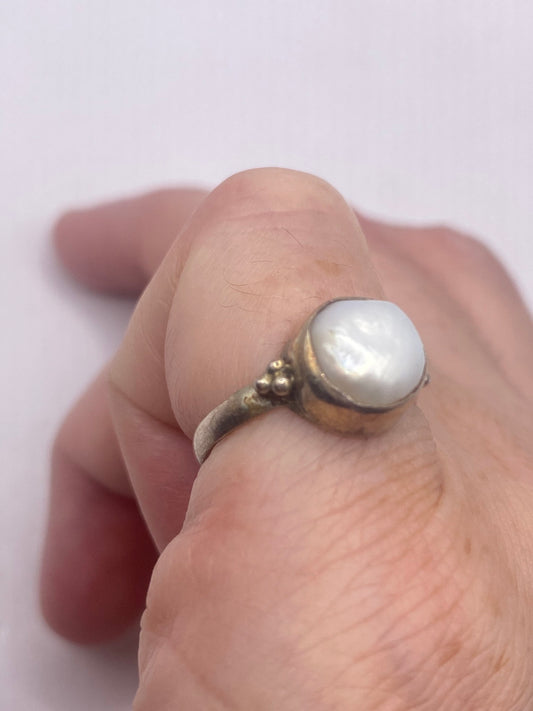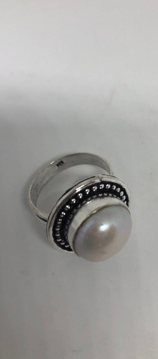 Vintage White Genuine Pearl Silver Cocktail Ring Size 6.25