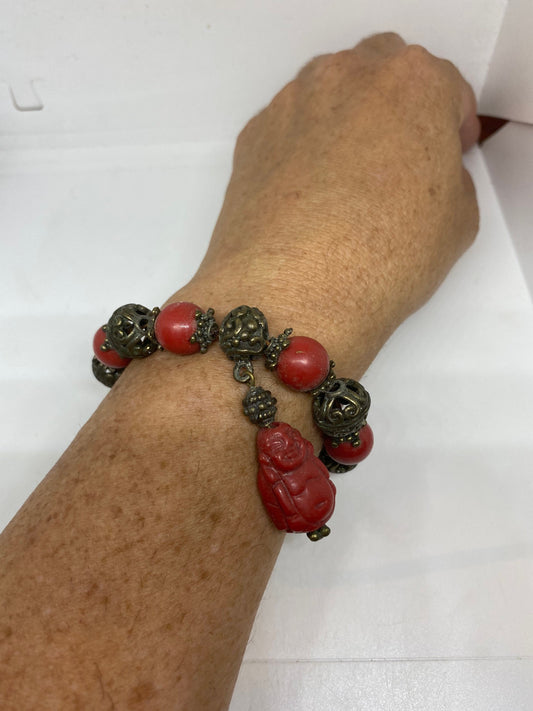 Vintage Red Buddha Bronze Antique Stretch Bracelet