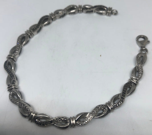 Deco Diamond Tennis Bracelet in 925 Sterling Silver 7.5 Inch Vintage