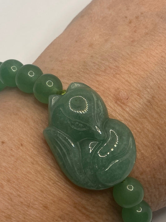 Vintage Green Jade Fox Lucky Stretch Bracelet