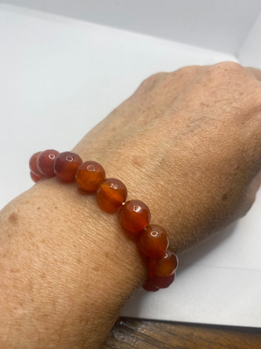 Vintage Faceted Carnelian Lucky Stretch Bracelet