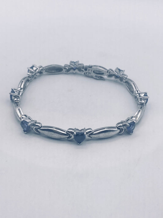 Handmade Genuine Blue Tanzanite Heart 925 Sterling Silver Tennis Bracelet