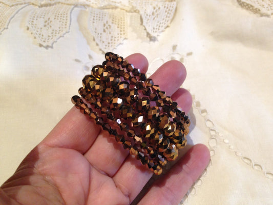 Vintage Styled Copper Toned Austrian Crystal Memory Wire Stretch Bracelet