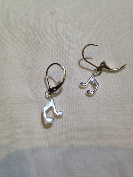 Vintage Handmade 925 Sterling Silver Music Note Charm Deco Earrings