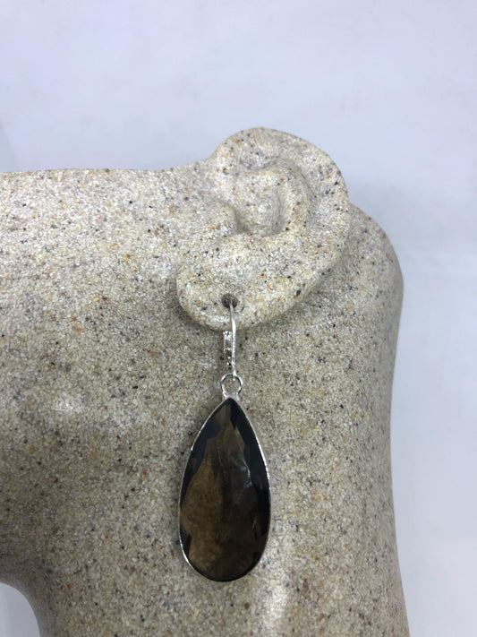 Antique Vintage Smoky Volcanic Glass Silver Dangle Earrings